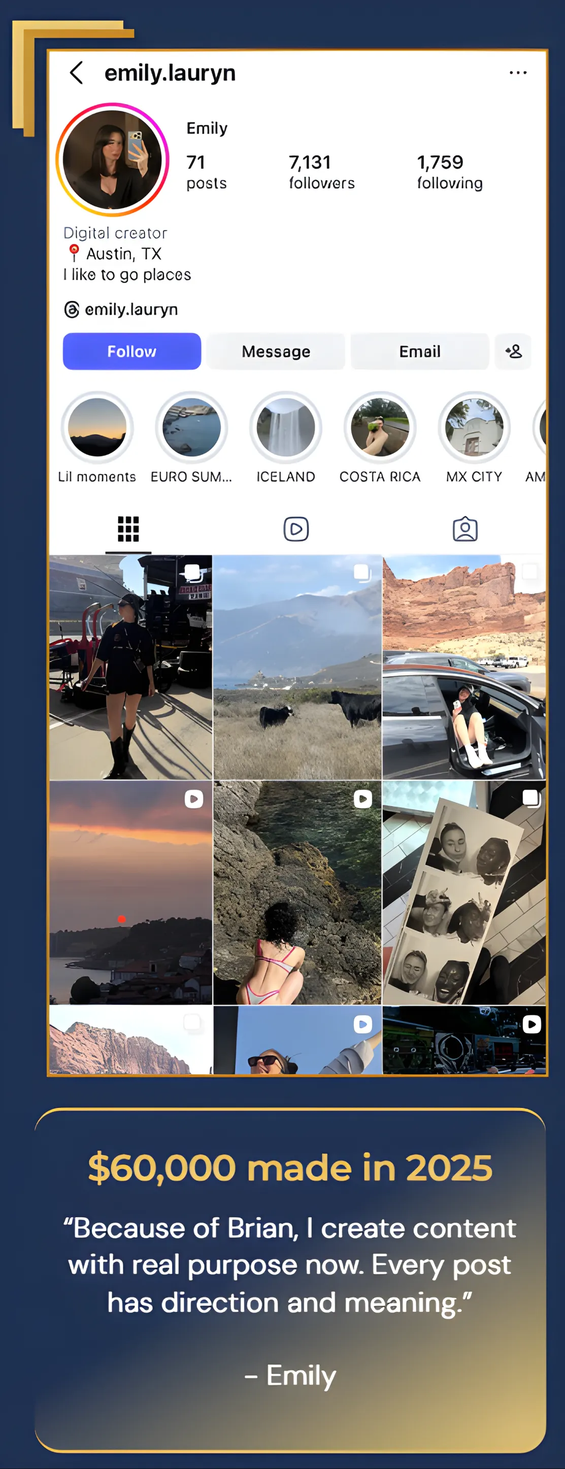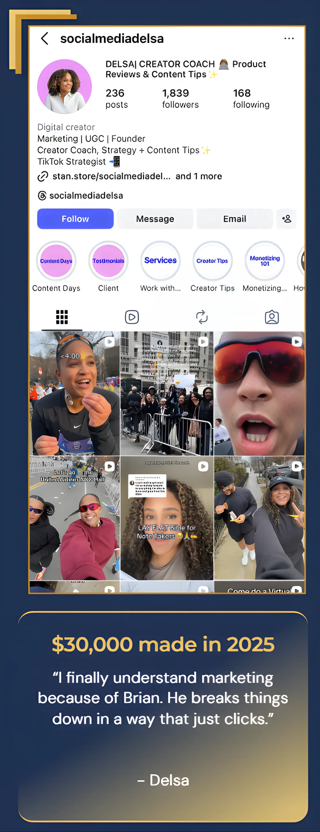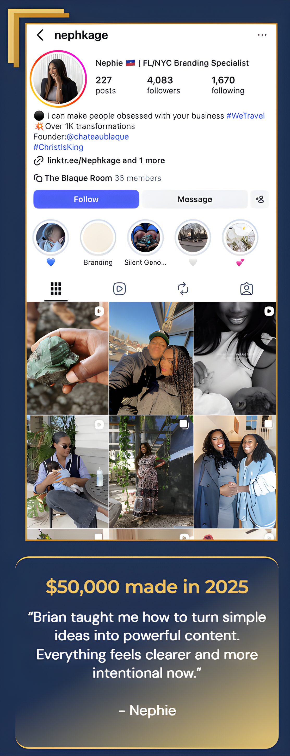 “Because of Brian, I create content with real purpose now. Every post has direction and meaning.”