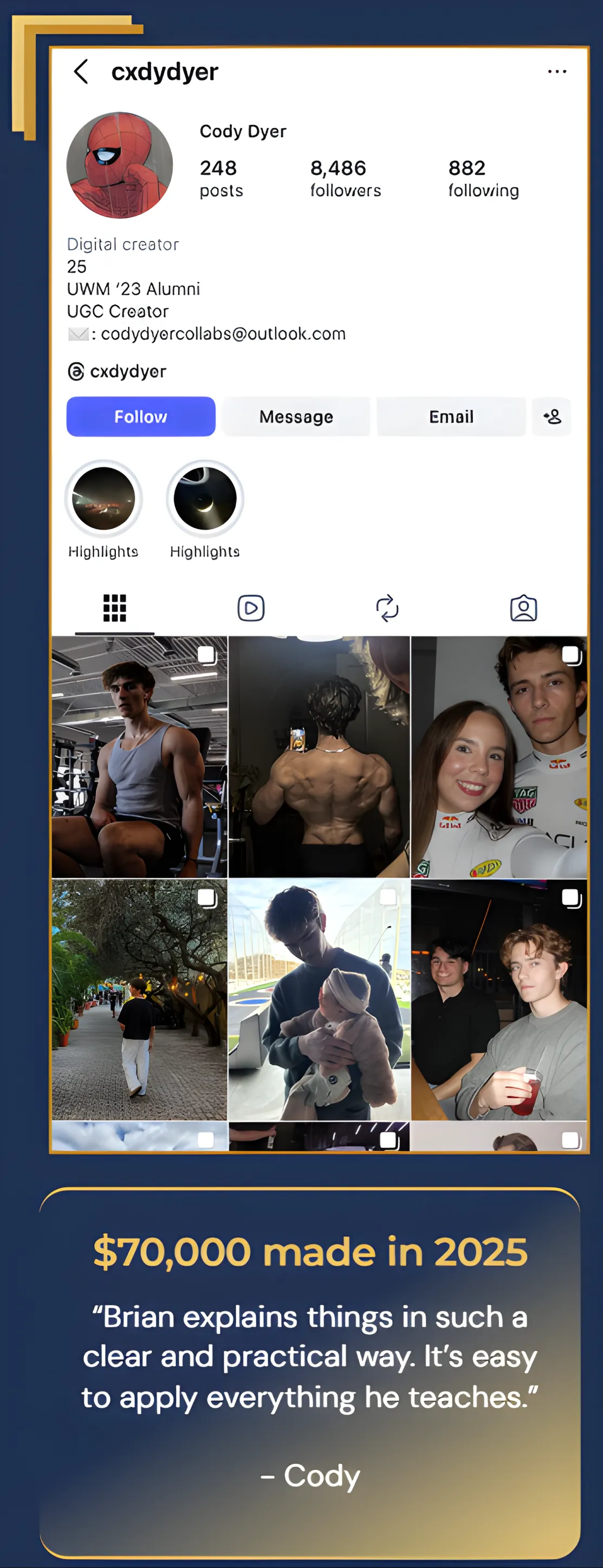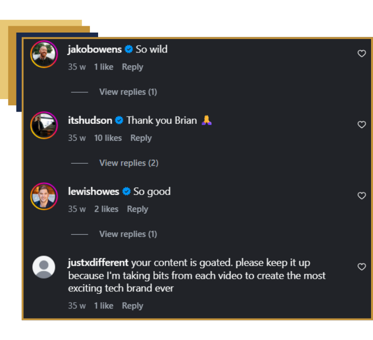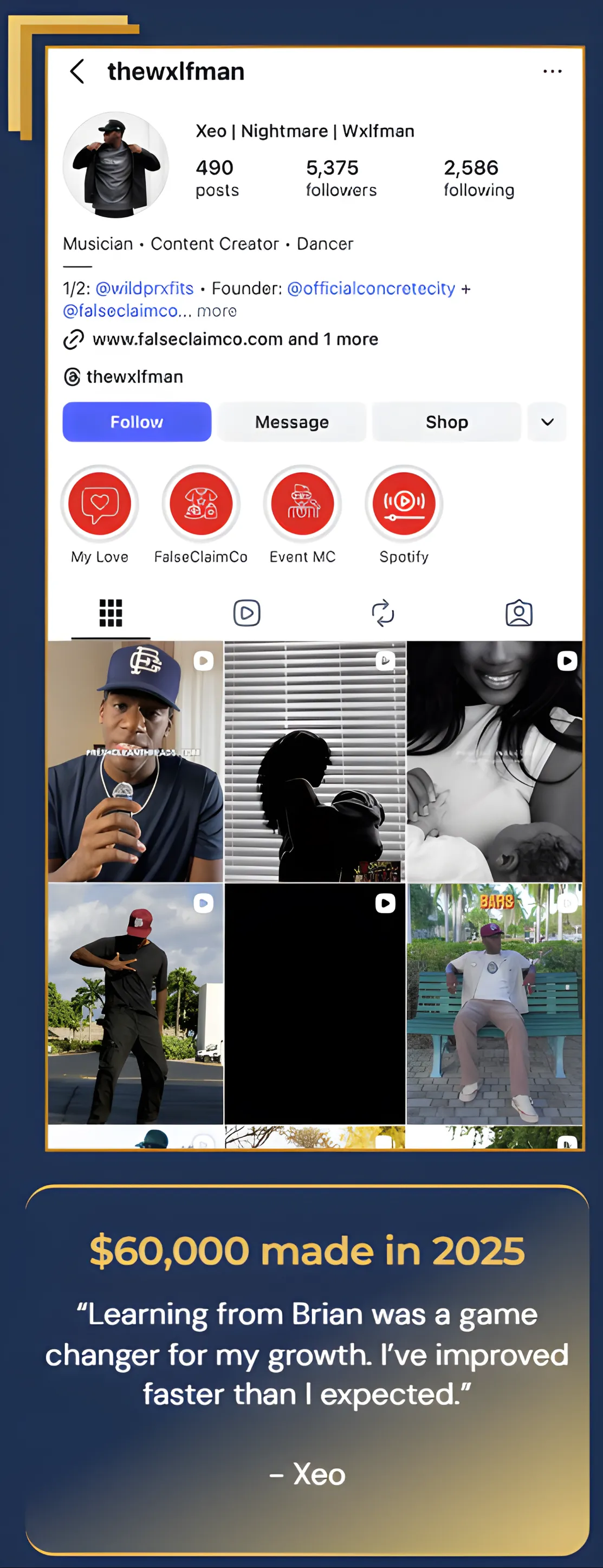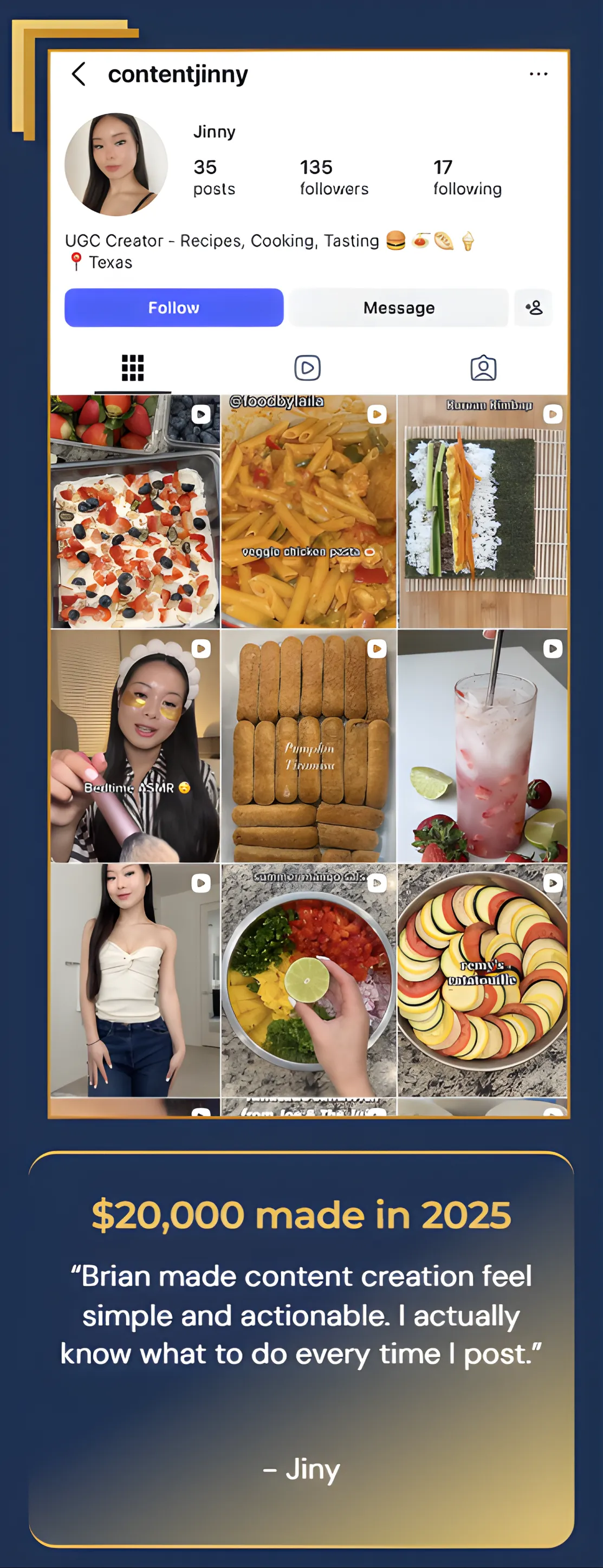 “Because of Brian, I create content with real purpose now. Every post has direction and meaning.”