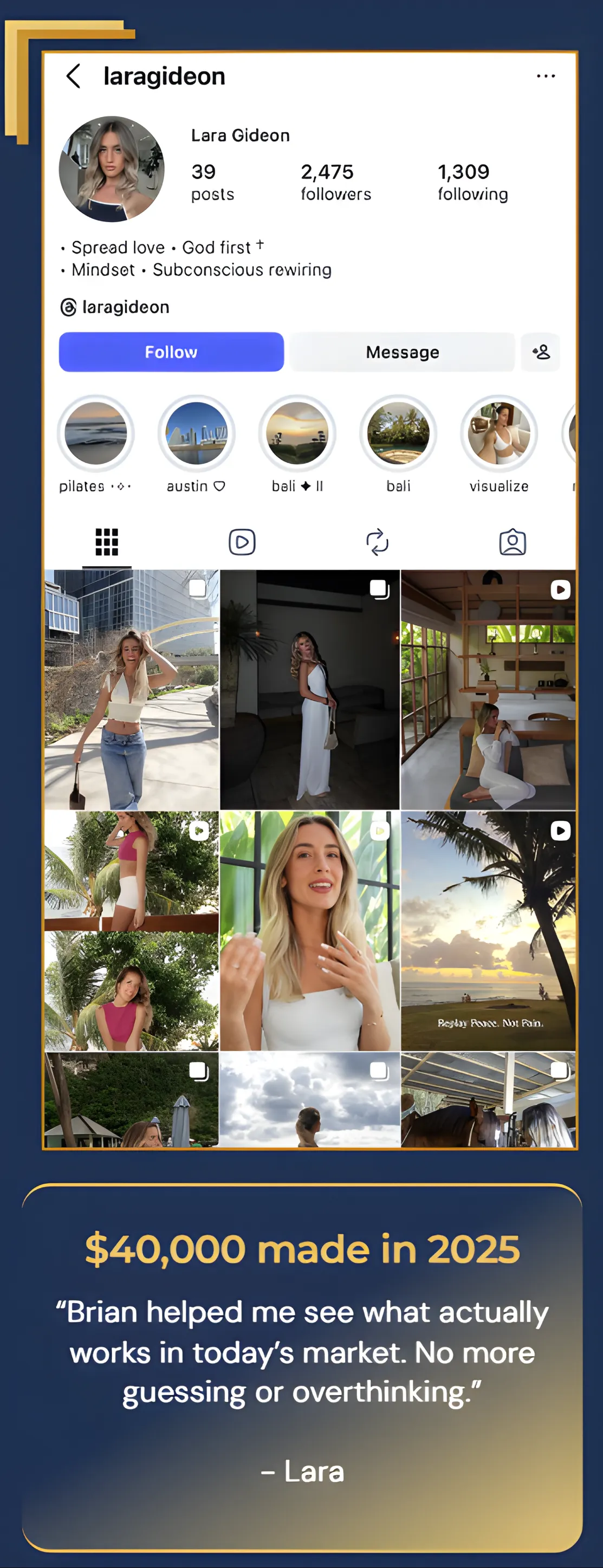 “Brian made content creation feel simple and actionable. I actually know what to do every time I post.”
